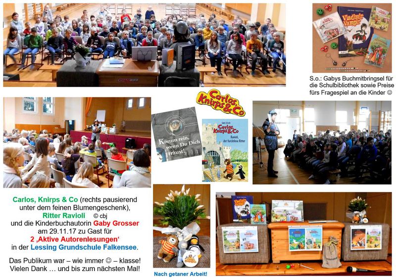 Und weil die Kinder nur mit Genehmigung gezeigt werden dürfen, hier einige Ausschnitte, zudem ein kleiner Einblick zu den Vorbereitungen für so eine 'Aktive Autorenlesung':