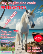 Kurz gesagt: z.B. 5 Einhorn-Fotoalben (1 für dich, 4 zum Verschenken) = 20 € zurück! Oder 20 Bücher nach Wahl, 20 % zurück!
